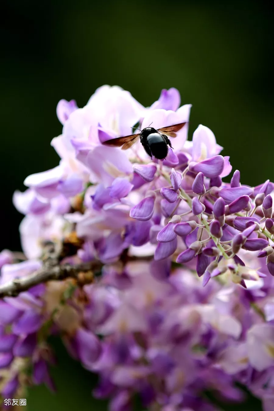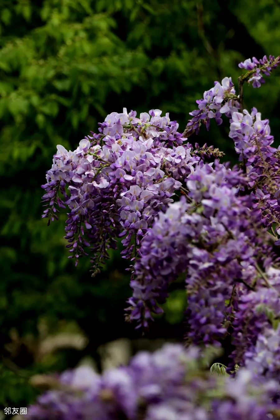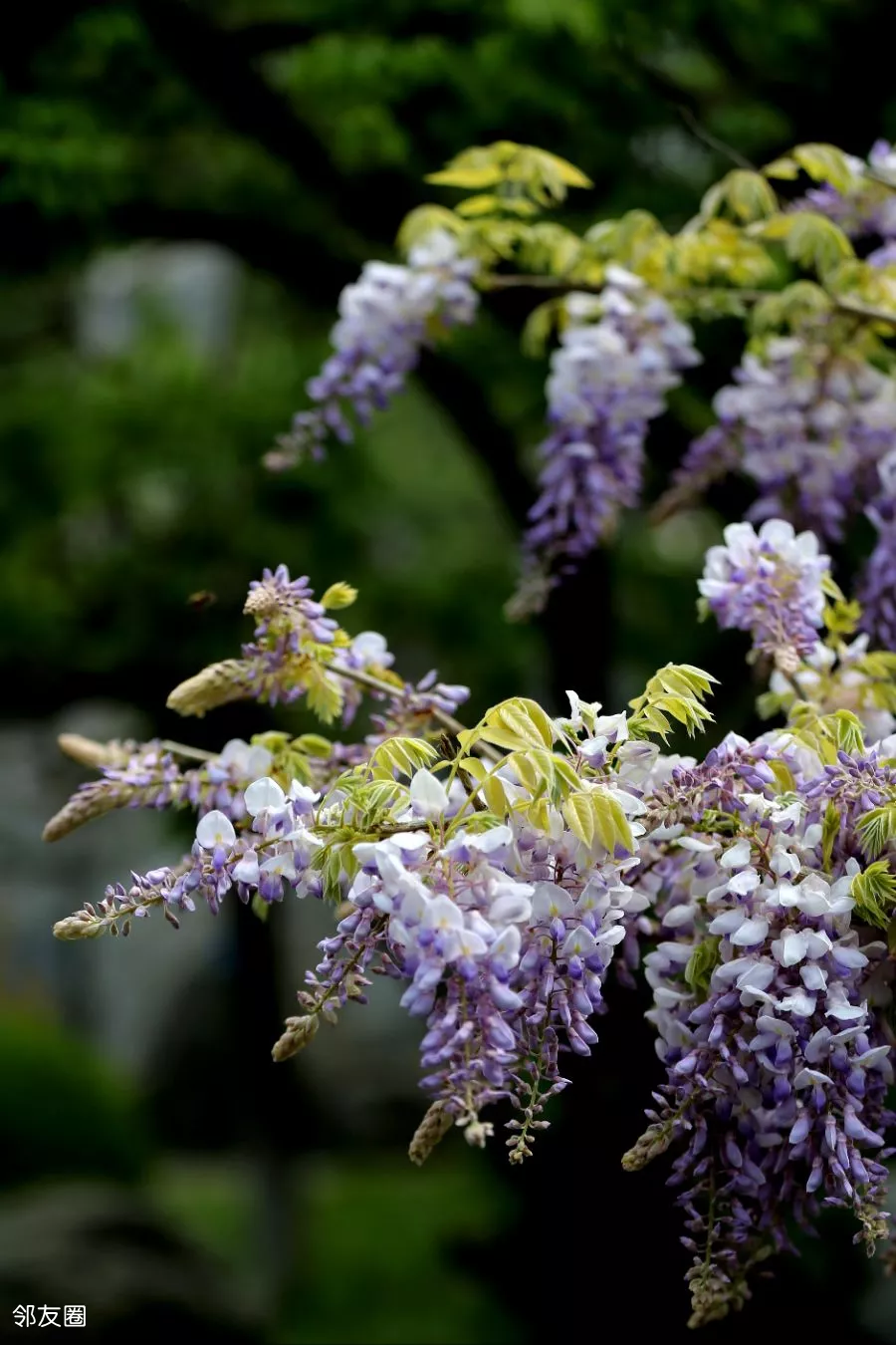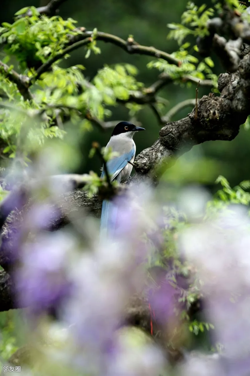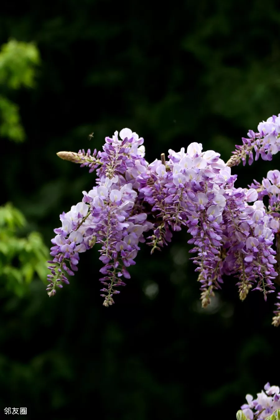 在龙字石林的一角,有数株紫藤,老干遒劲,攀石附岩,春末夏初,万花齐发,宛如石头上流下许多紫色的瀑布,意境不俗。蜂、鸟齐至,活脱脱一幅花鸟国画。