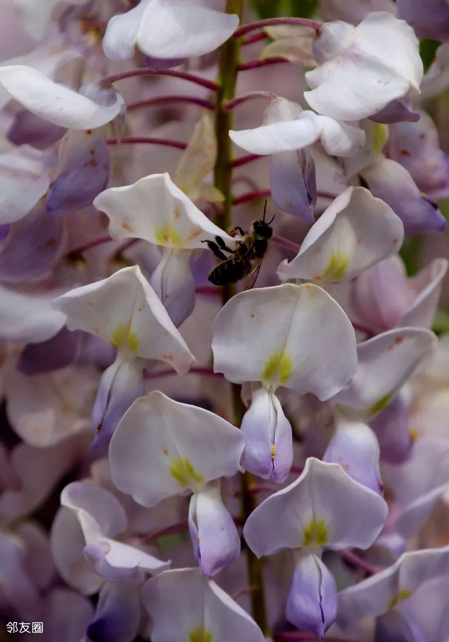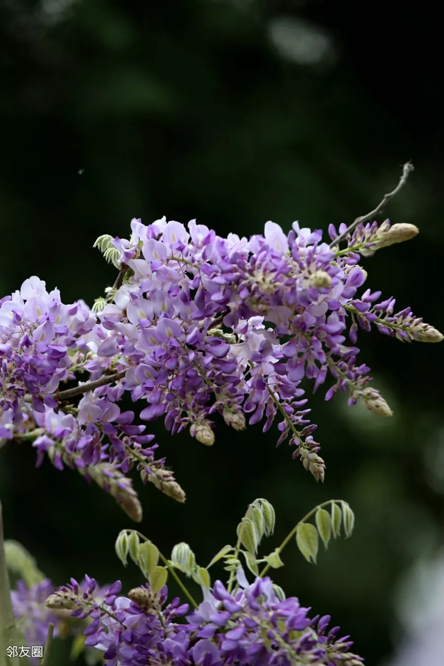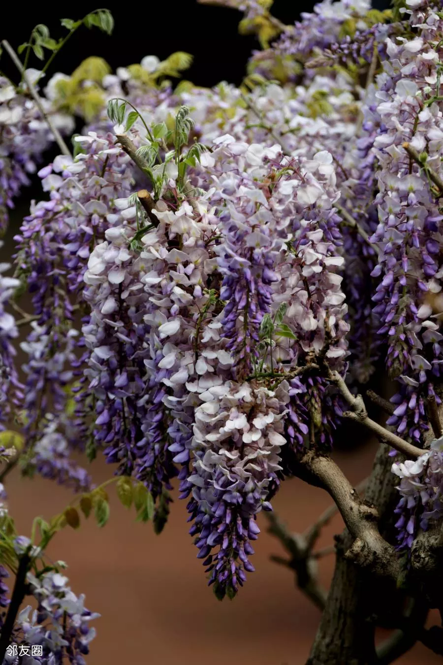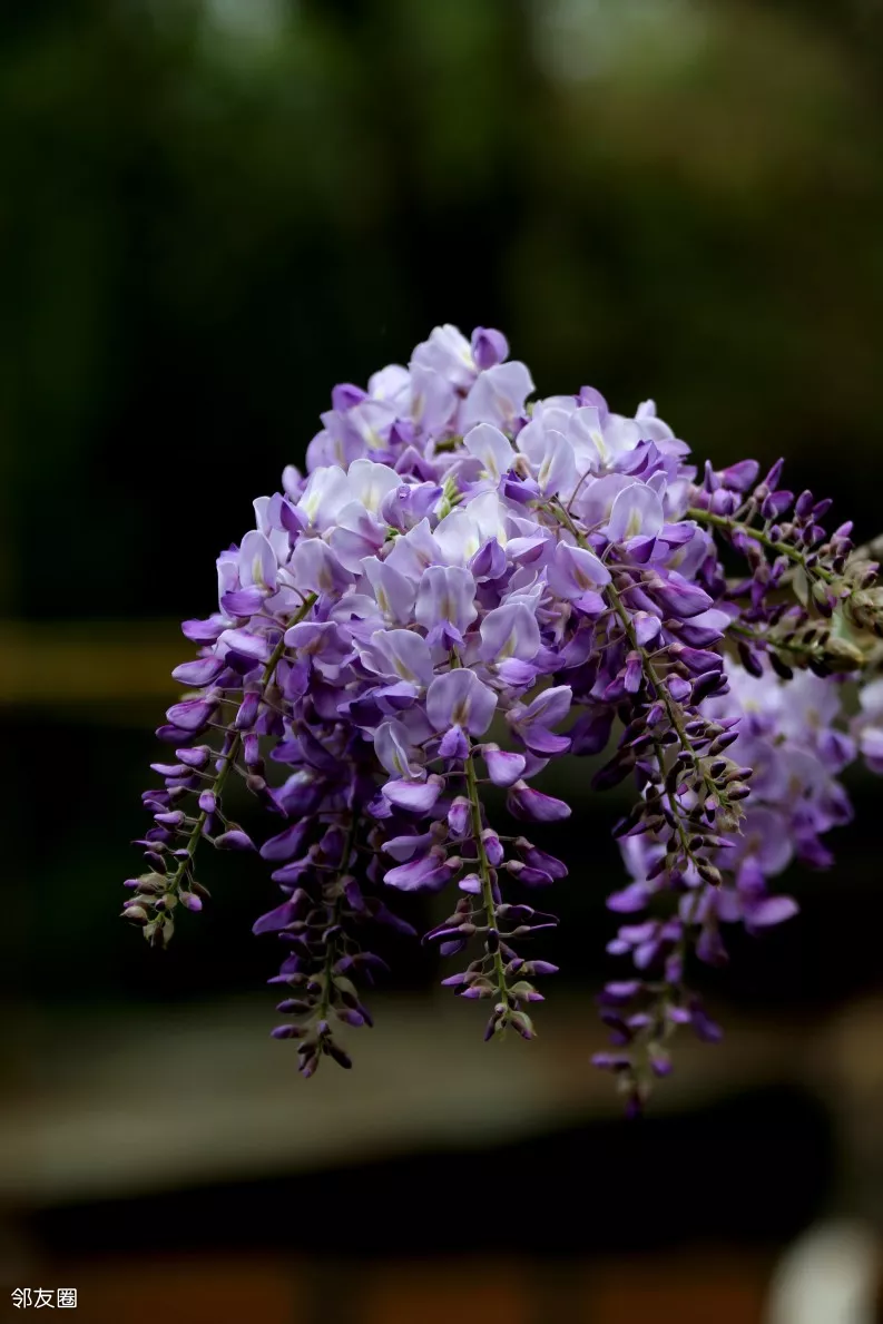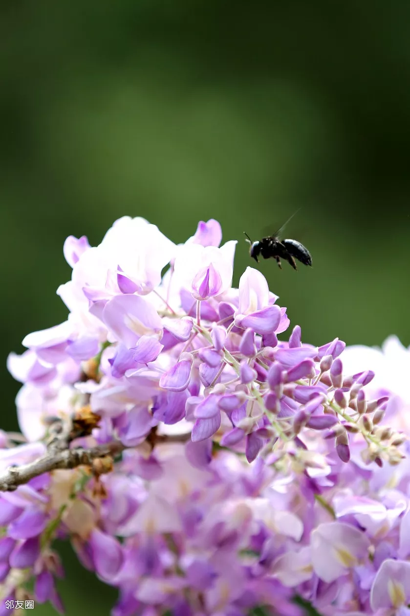在龙字石林的一角,有数株紫藤,老干遒劲,攀石附岩,春末夏初,万花齐发,宛如石头上流下许多紫色的瀑布,意境不俗。蜂、鸟齐至,活脱脱一幅花鸟国画。