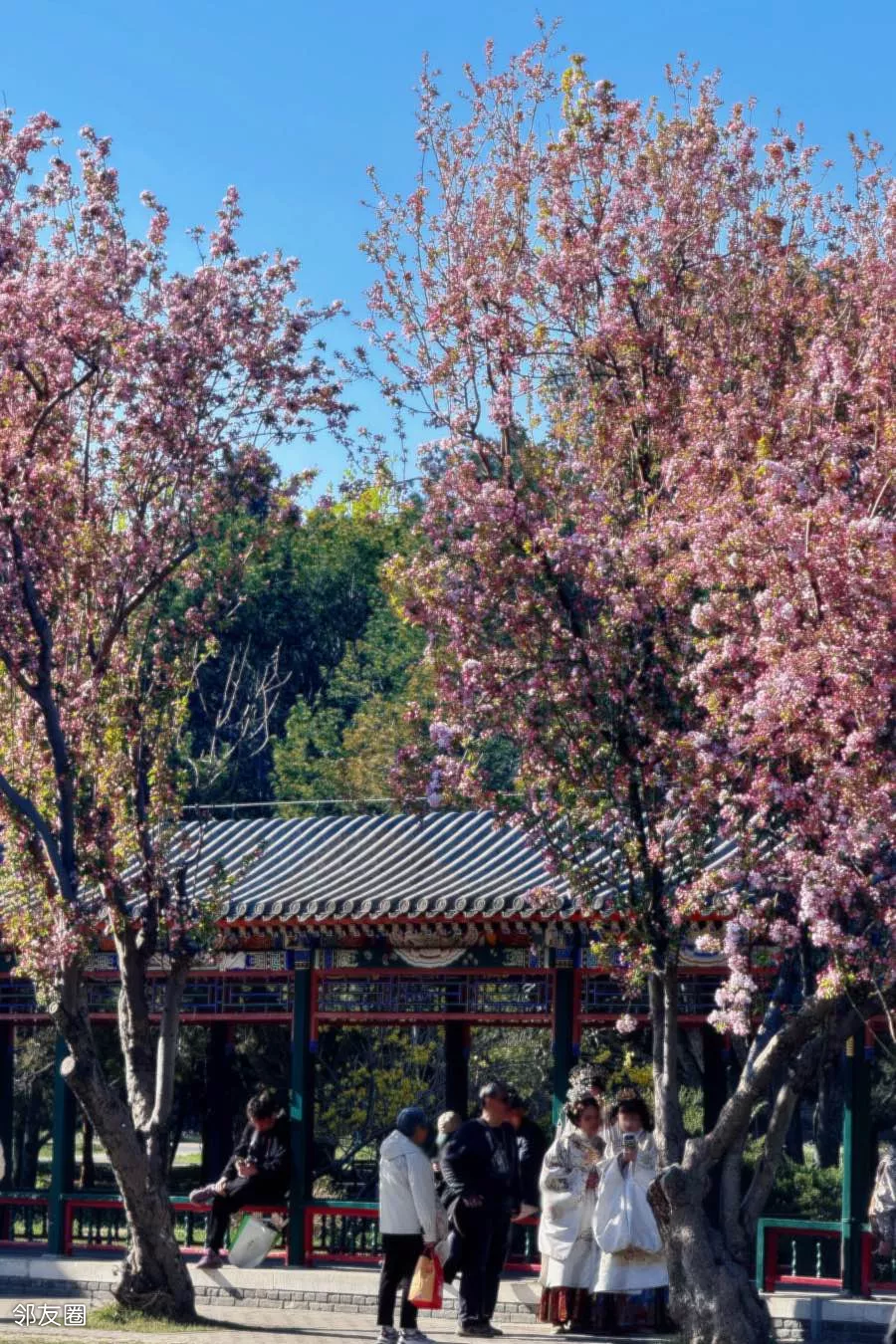 双环万寿亭旁的“海棠花&古装小姐姐”