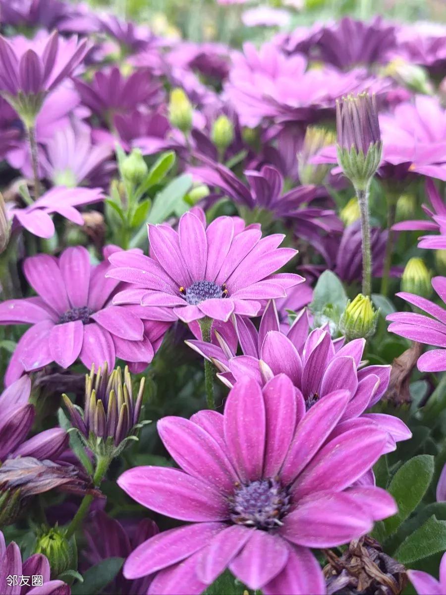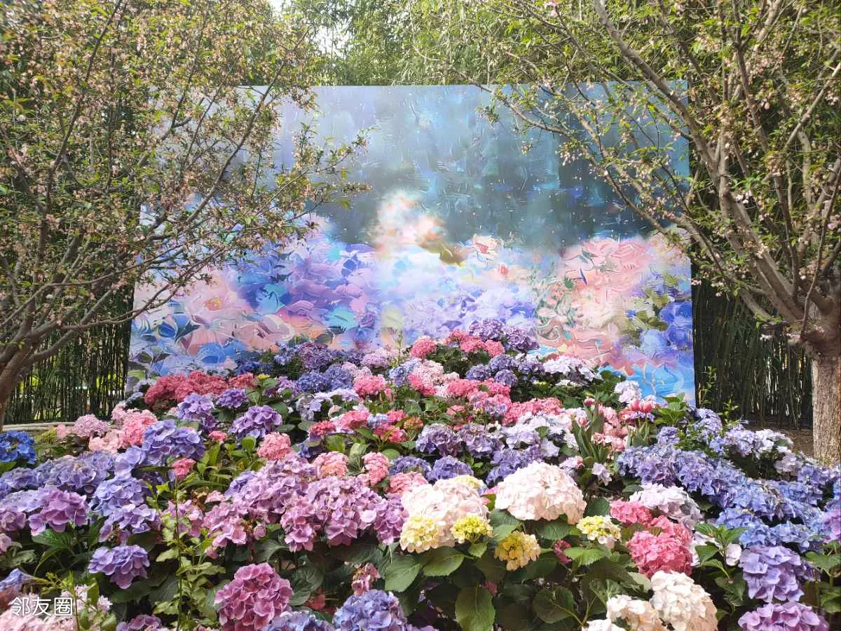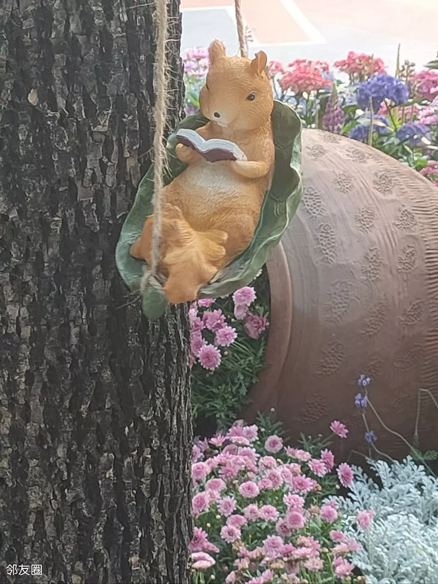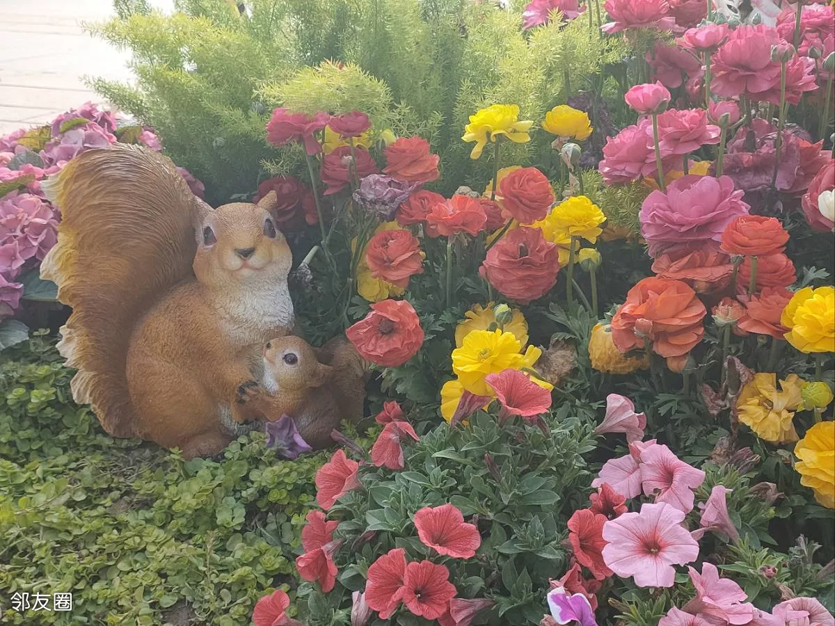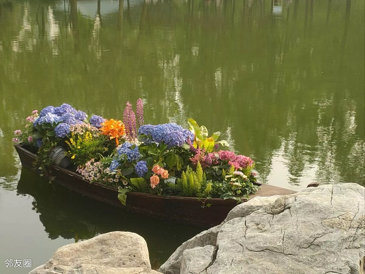 各种鲜花盛开,摆放造型错落有致,别有情趣。