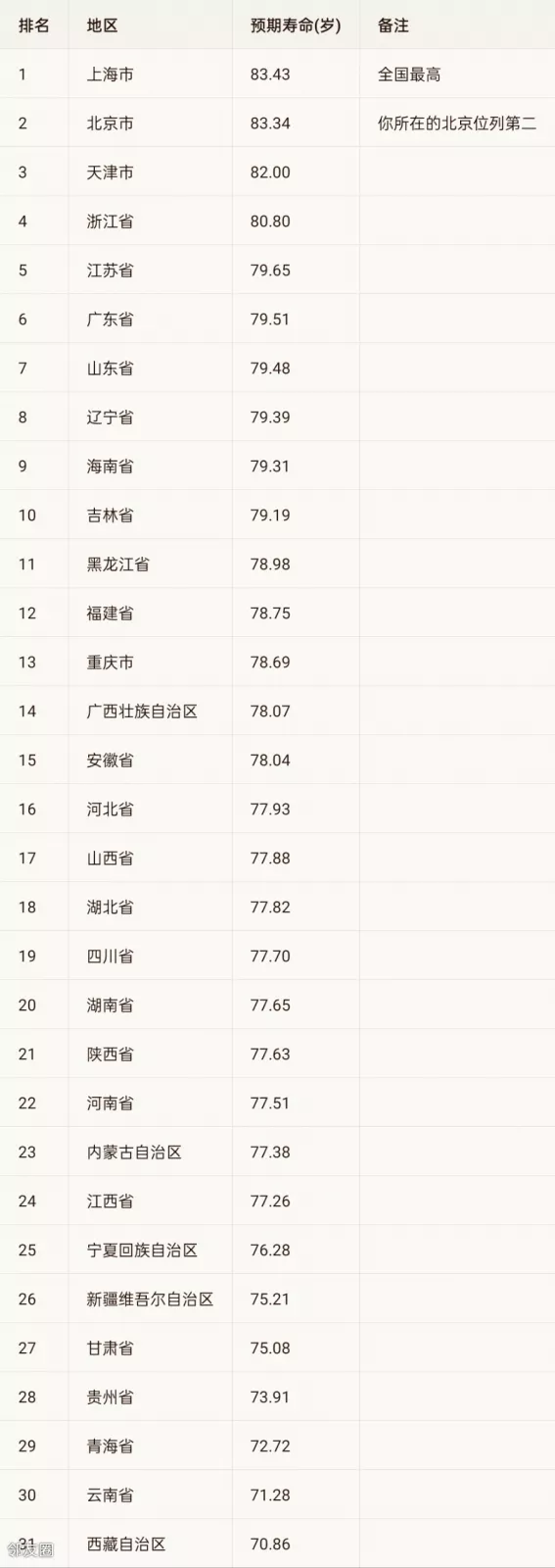 云南 广西 贵州…… 看来并非是气候好就寿命高
