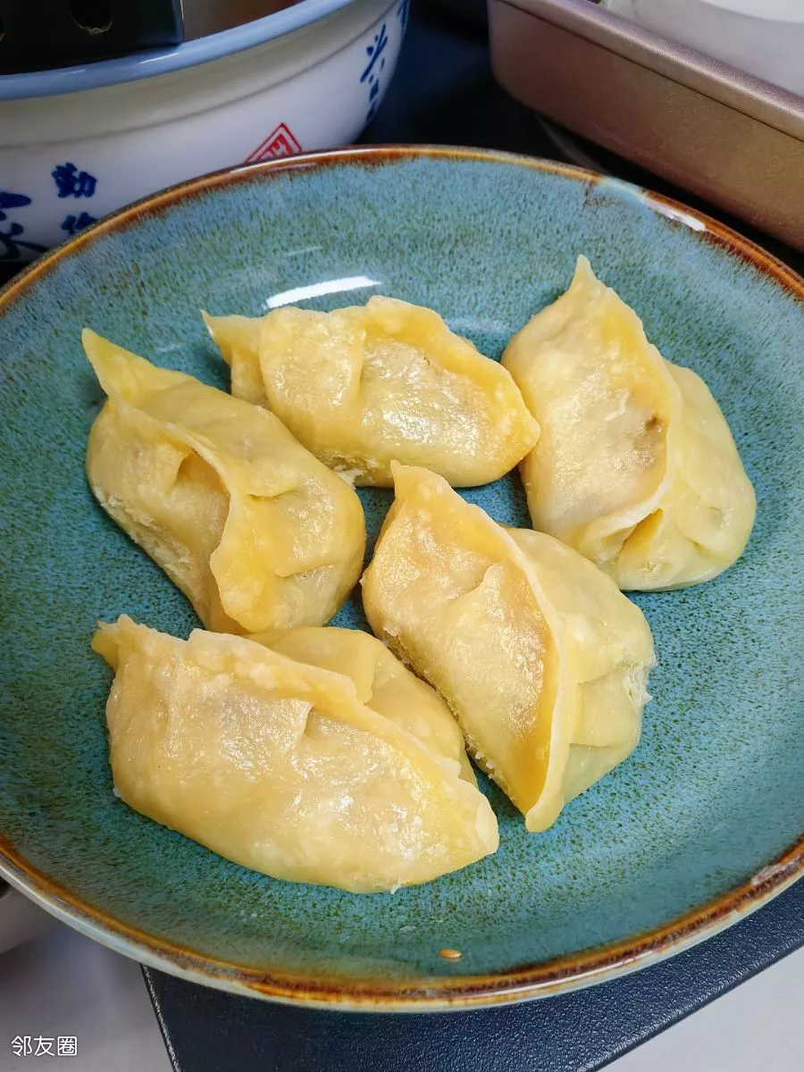 烫面,捏蒸饺,加了三分之一的玉米粉