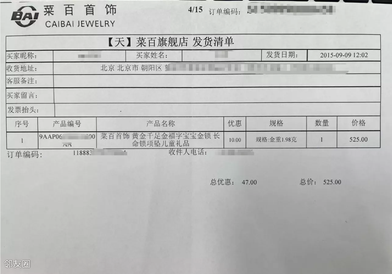 翻到2015年菜百金锁价格,ε=(´ο`*)))唉