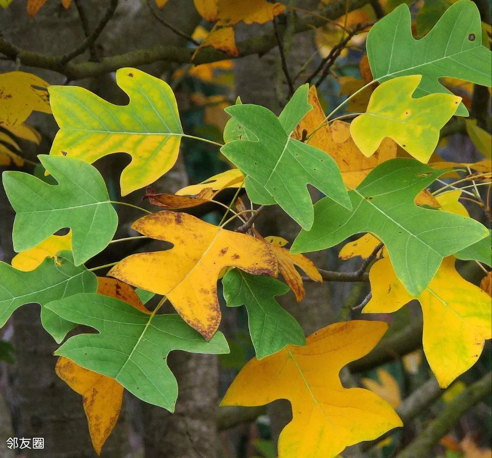 是不是秋叶有四个尖的?好像有一年在紫竹院靠近西北门的地方看到过,当时觉得这叶子形状真有意思。