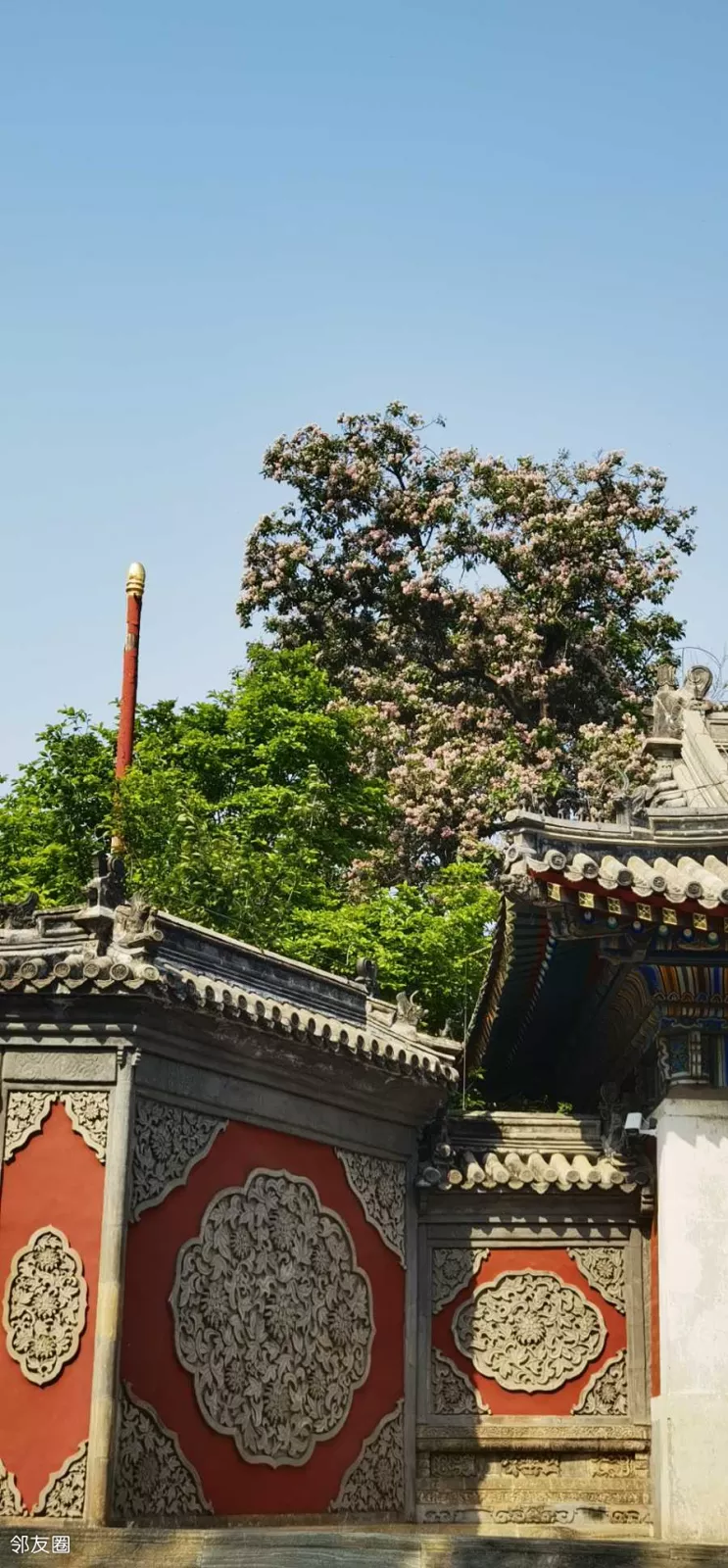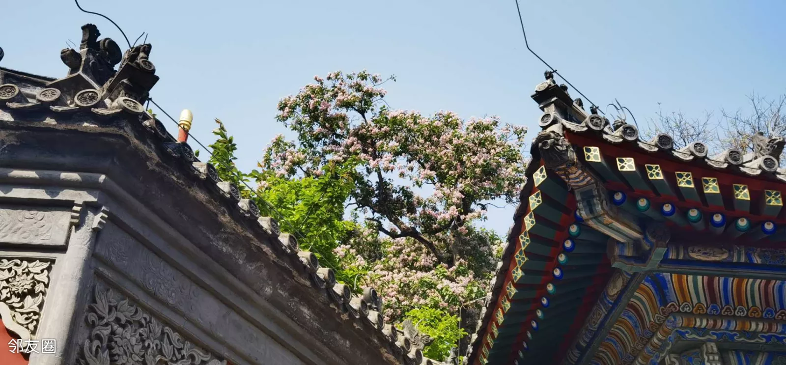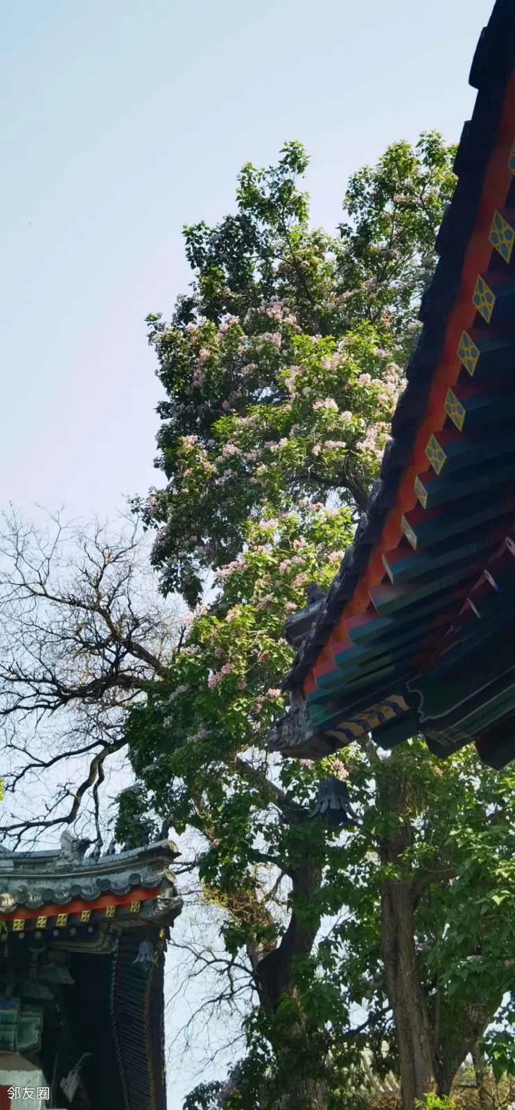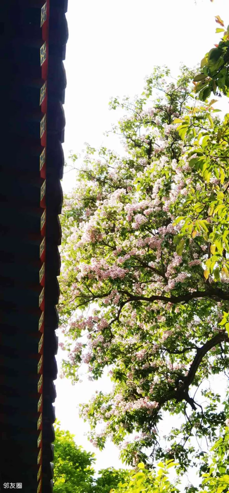 万寿寺里360多年苍劲挺拔很有故事的老楸树满树繁花啦!