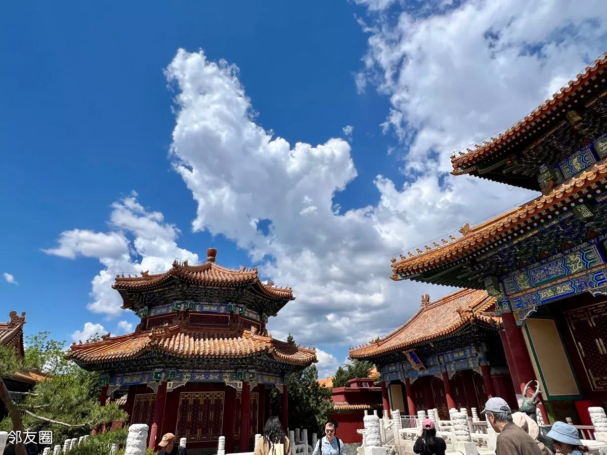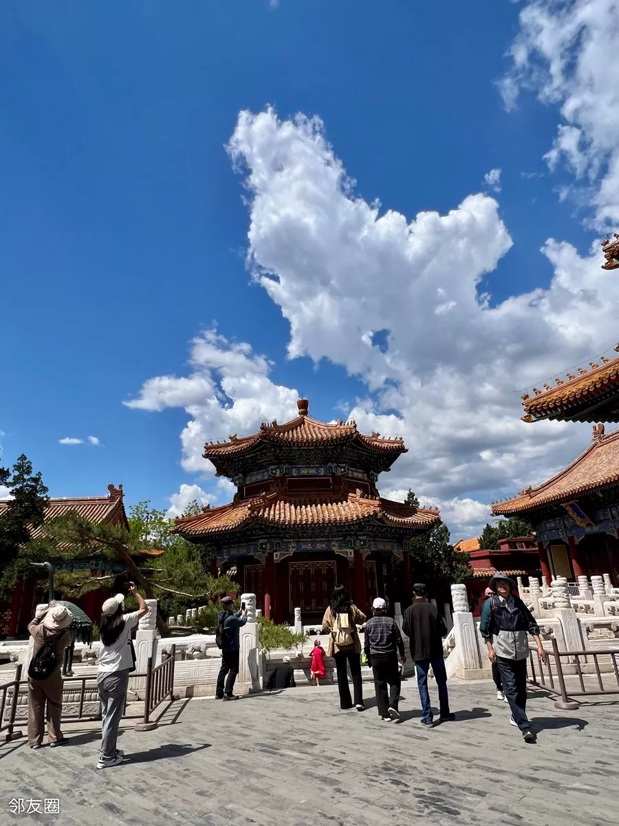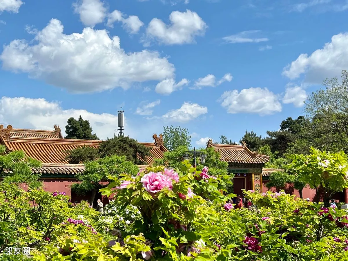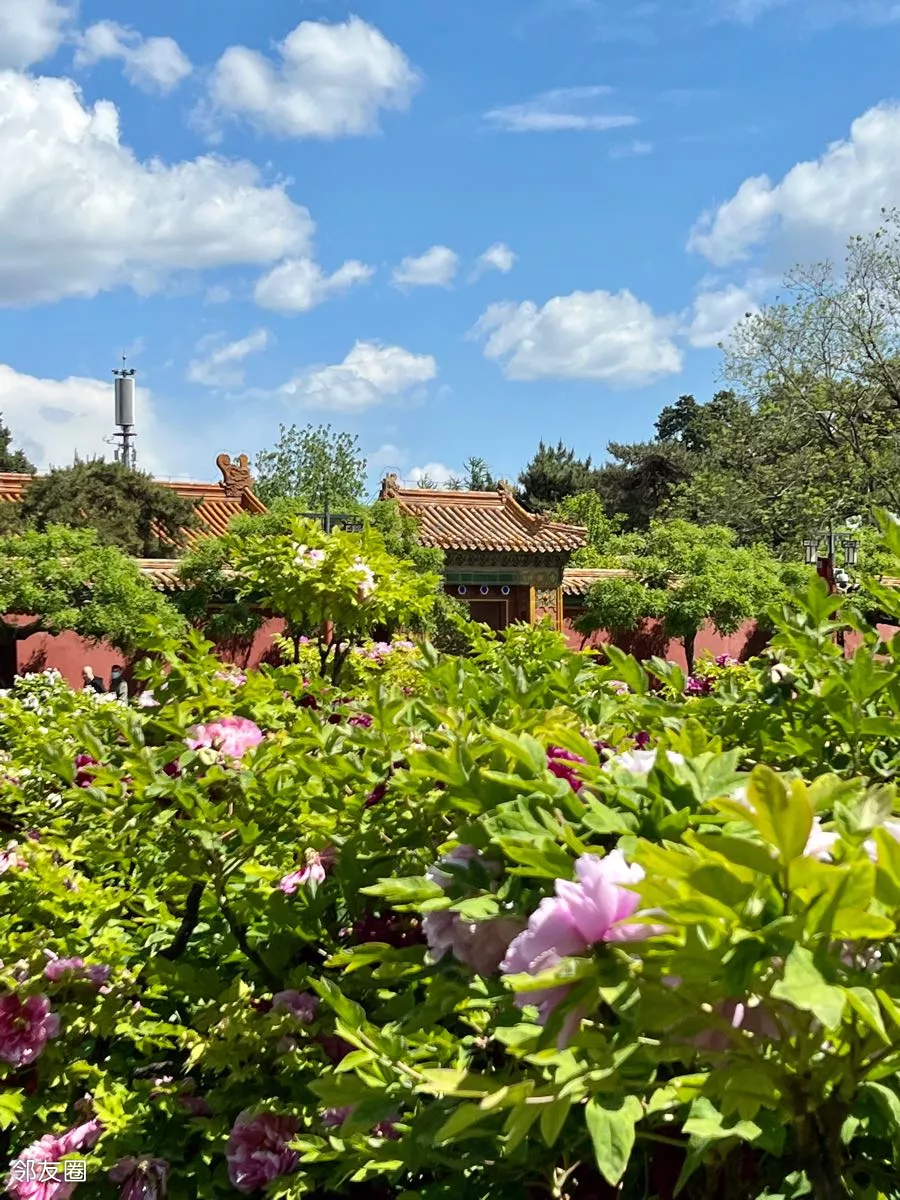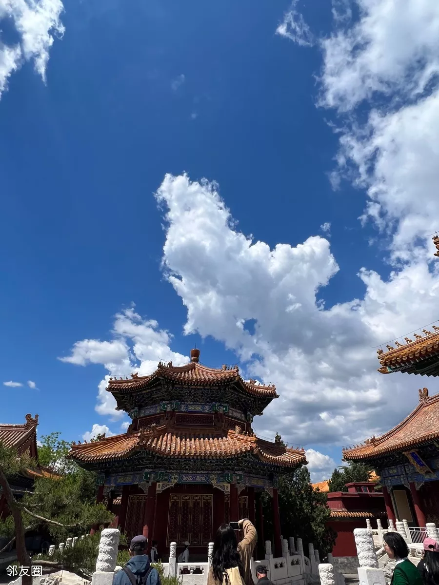 兰天白云下的景山公园美景如画!